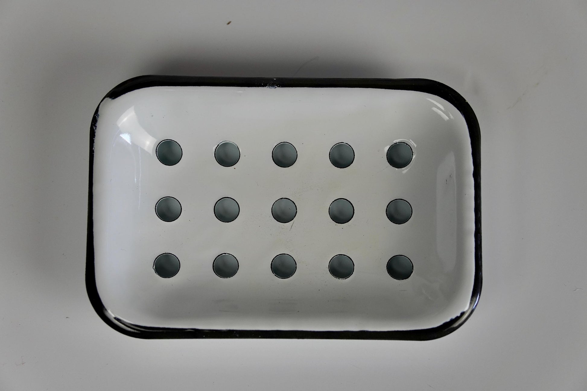 The vintage, farmhouse-style soap dish may have some slight imperfections due to the nature of the enamel coating process. This shows off the natural, handmade touches on each soap dish.
