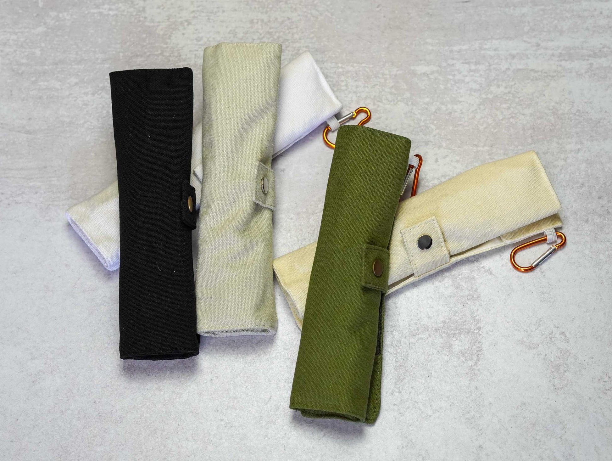 Comes in a cotton canvas roll-up pouch that holds all the essential cutlery plus your strainless steel straw and cleaner.  The bamboo utensils are made of 100% natural untreated bamboo and are chemical and BPA free.  The canvas pouch is 100% organic cotton with a breathable inner lining that helps the utensils dry quickly.